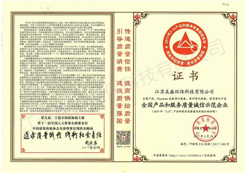 2017年全國產(chǎn)品和服務(wù)質(zhì)量誠信示范企業(yè)-家用商用成套產(chǎn)品